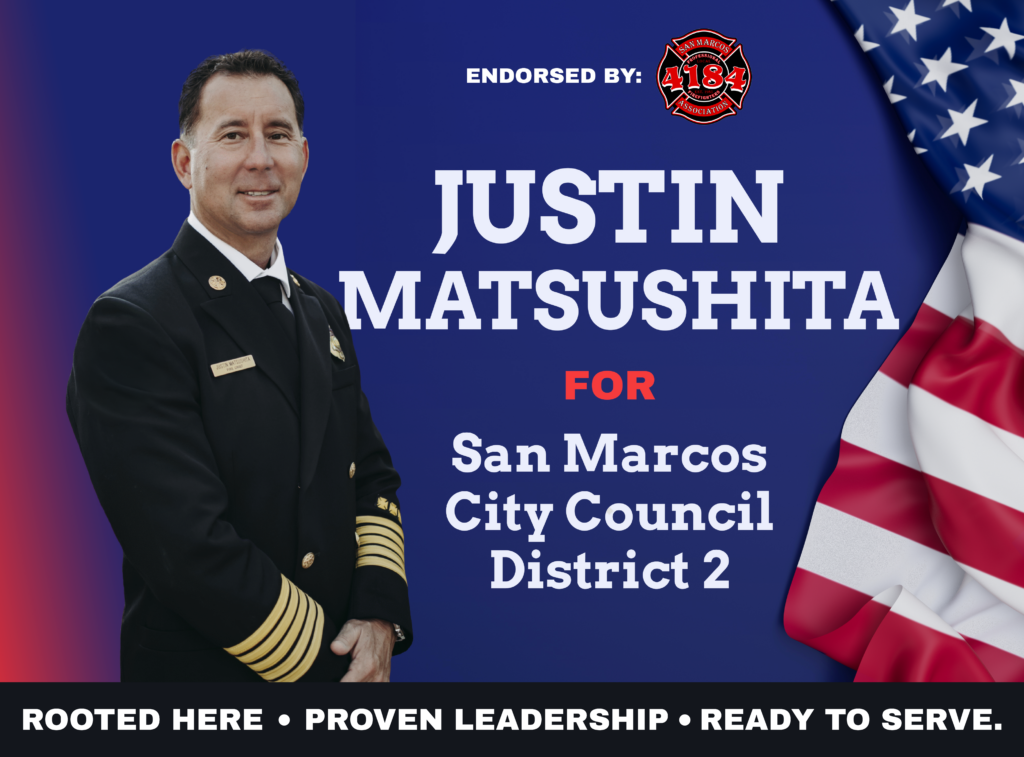 I’ve devoted my life to public service—responding to fires and emergencies across California and leading with integrity, compassion, and collaboration as Fire Chief. As a lifelong San Marcos resident who’s lived in every district, I understand our city’s history, character, and people. From growing up at the San Marcos Boys & Girls Club, to leading statewide fire safety initiatives, I’m ready to continue serving and leading the community that raised me.